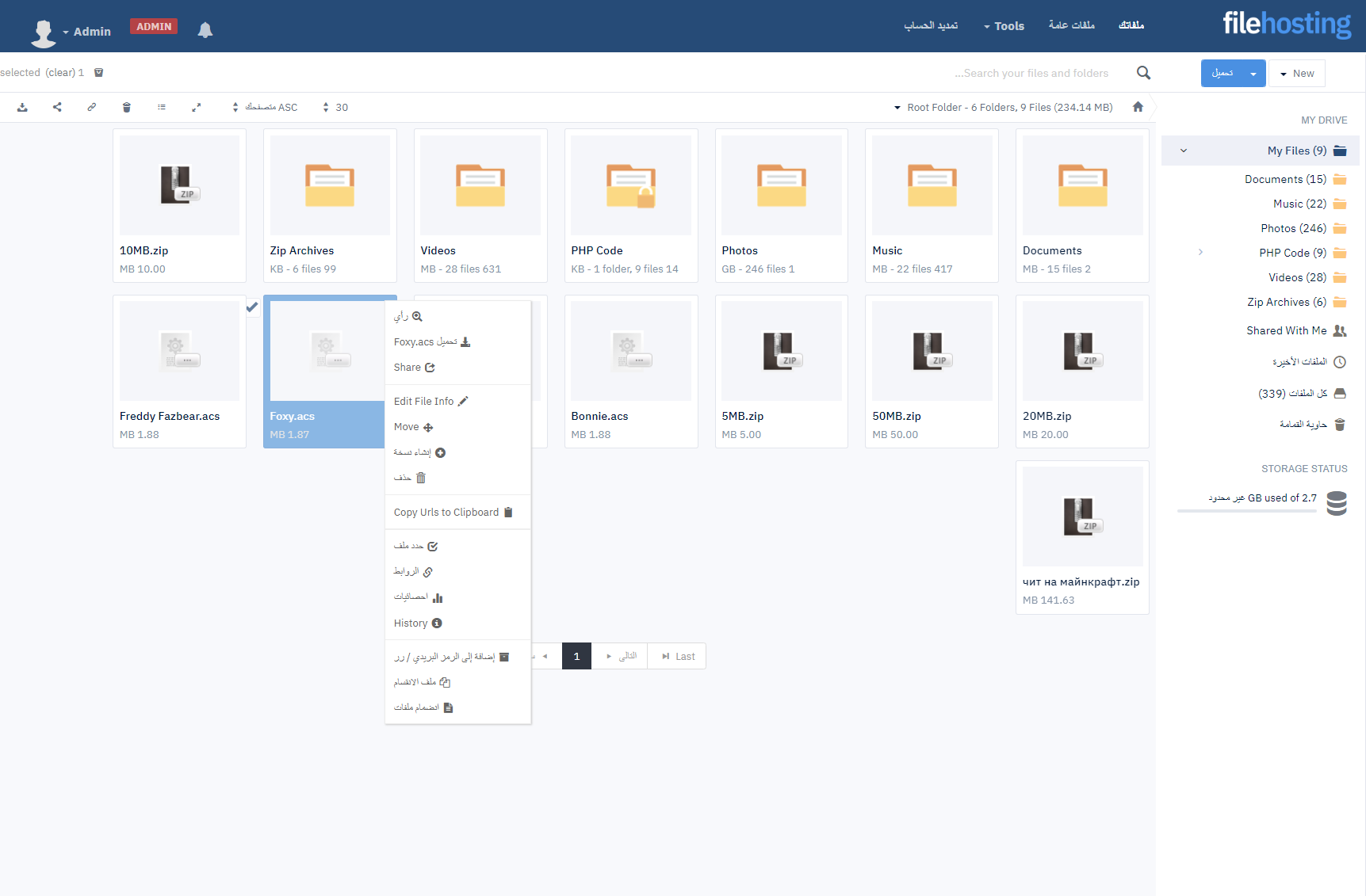 The file manager is fast, flexible and feature rich. Each user which signs up for an account will have their own file manager. We've built this entirely in-house, so additional features can be added as needed.